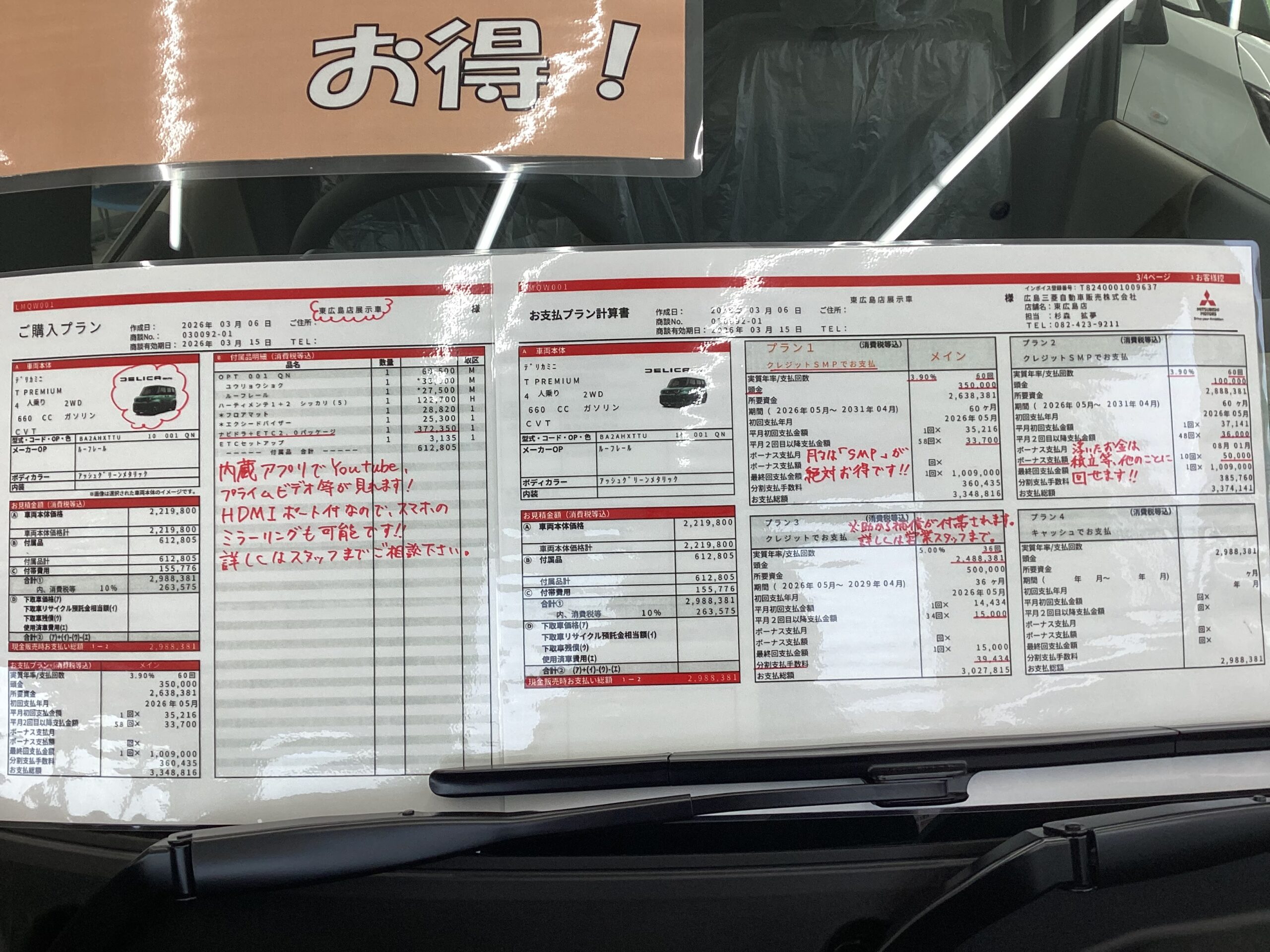 デリカミニに関しては、お得なお支払いプランや、ナビ、ETC、ドラレコが全てセットになったお買い得なセットプランもございます。