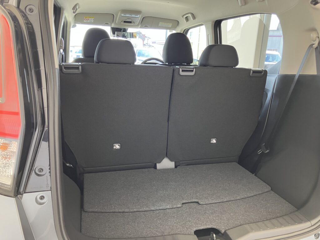コンパクトな軽自動車ですが、荷室スペースもしっかりあるのに、後部座席もゆったりと座れます✨