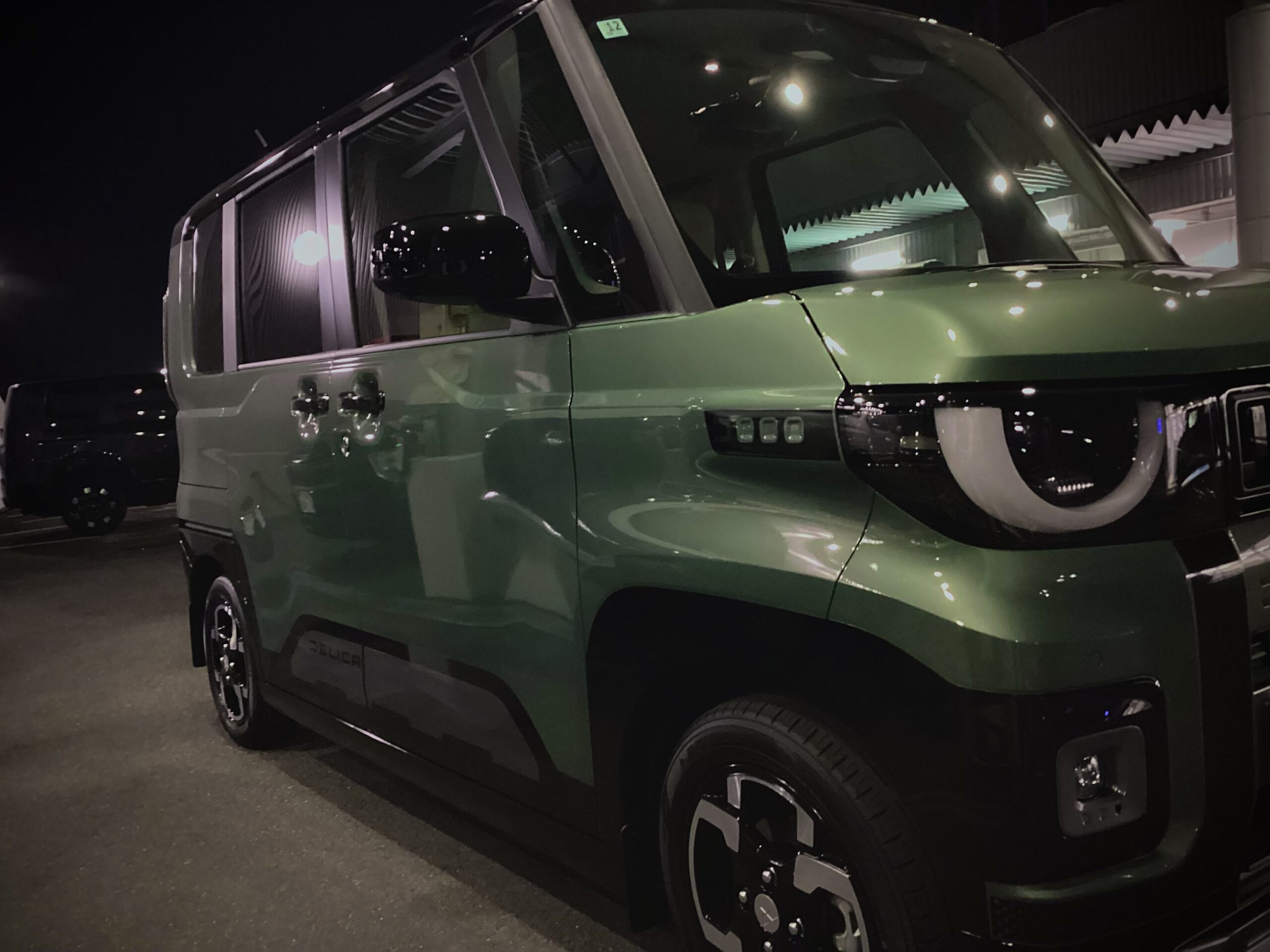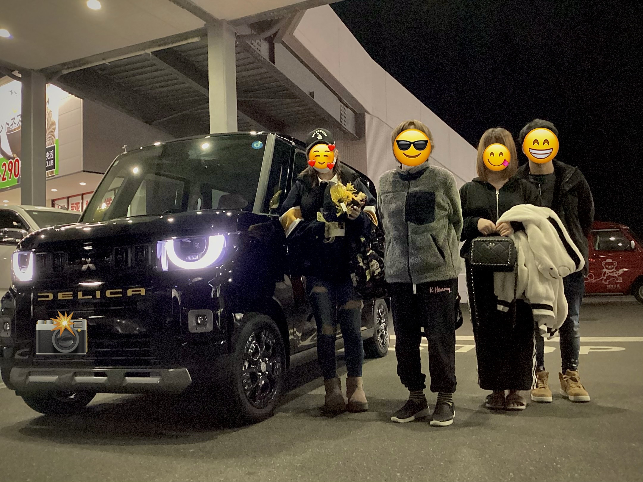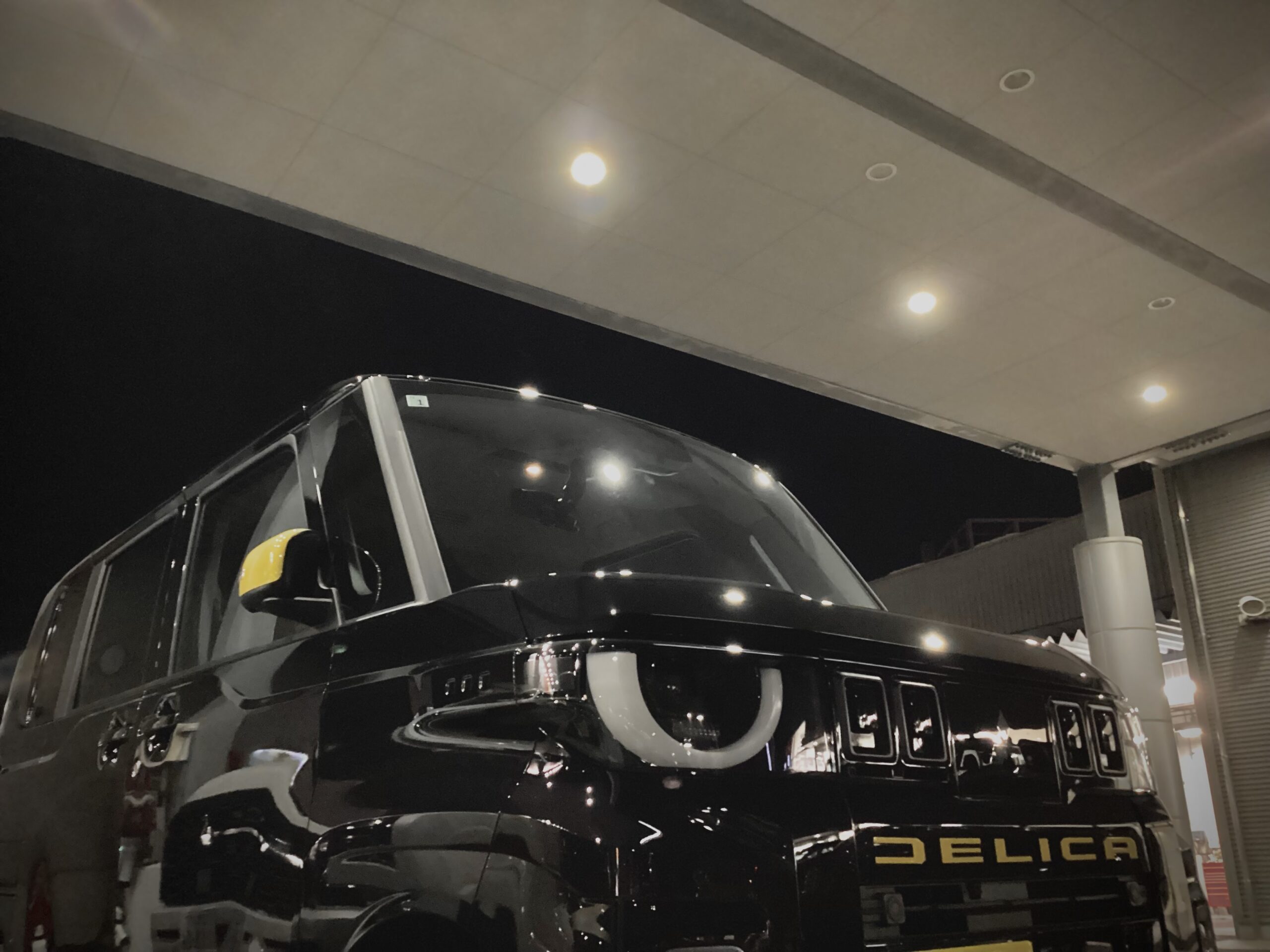 旧型デリカミニからのお乗り換えです。ブラックボディに今回初採用となったイエローエンブレム、ドアミラーカバーを装着し、よりポップな装いに。