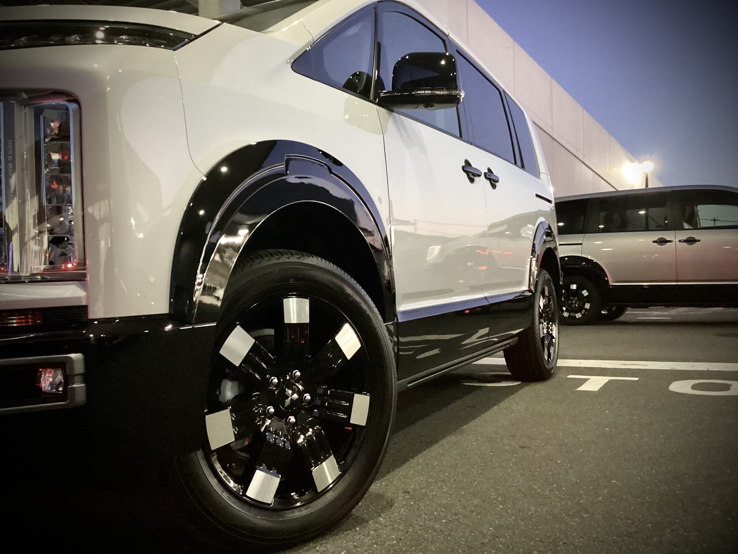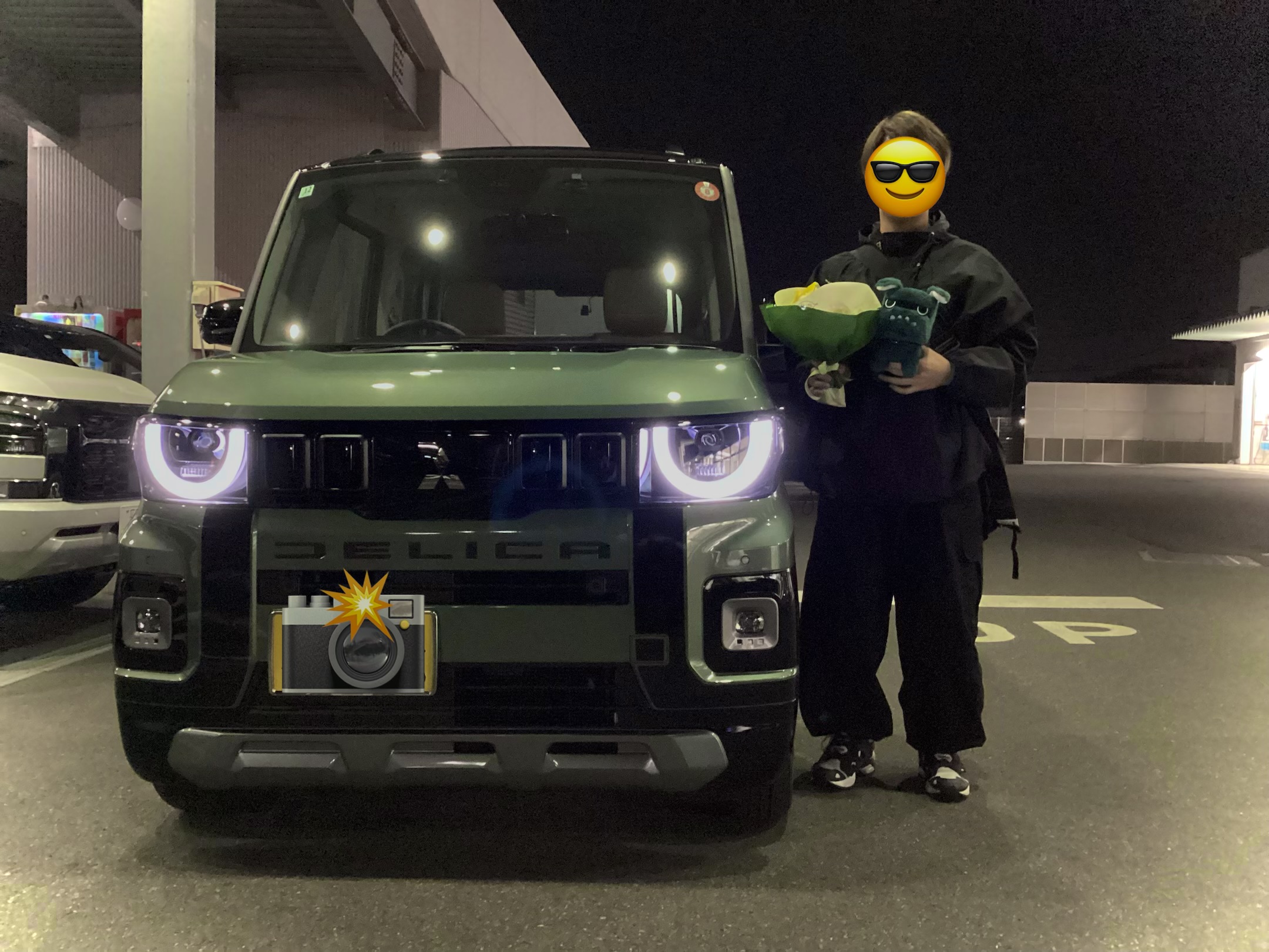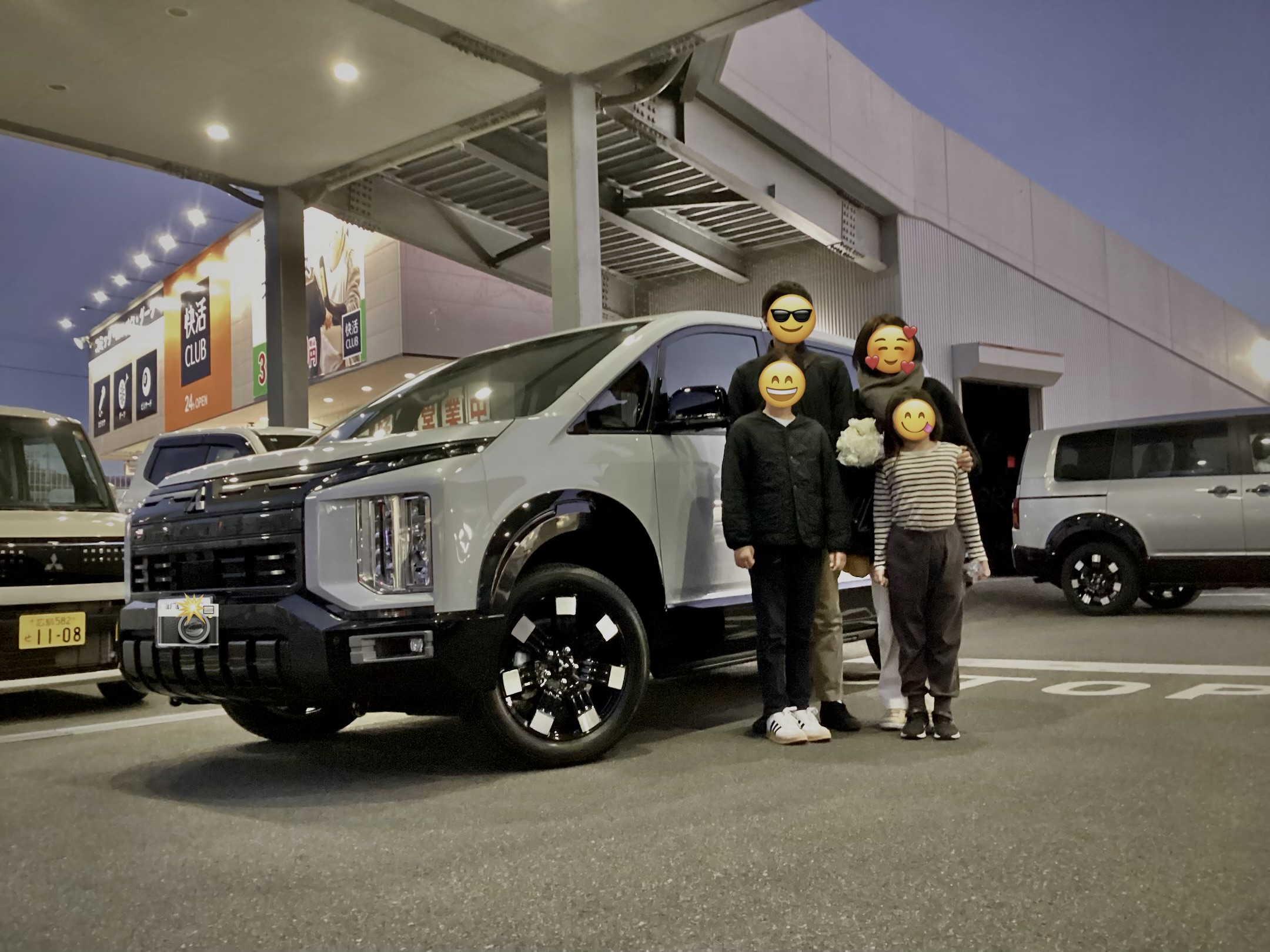 旧型デリカミニからのお乗り換えです。ブラックボディに今回初採用となったイエローエンブレム、ドアミラーカバーを装着し、よりポップな装いに。